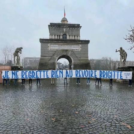 Non solo il tifo per la squadra, ma anche l'immancabile ironia verso i rivali di sempre. Durante la partita contro il Sassuolo, la Curva Sud ha esposto uno striscione di sfottò rivolto agli ultras della Lazio, prendendo di mira un recente errore grammaticale. Qualche giorno fa, infatti, i tifosi biancocelesti avevano omaggiato l'attrice Brigitte Bardot con uno striscione che recitava "Je ne regrette rien, au revoire Brigitte", commettendo però un errore di ortografia, avendo aggiunto una "e" finale a "revoir". La Curva Sud non ha perso l'occasione: nel cuore del tifo giallorosso è apparsa una grande "E" di colore blu, accompagnata dalla scritta: "Ritrovata a Ponte Milvio...".