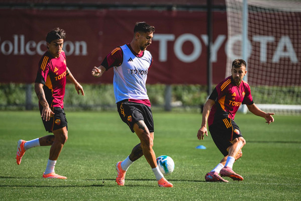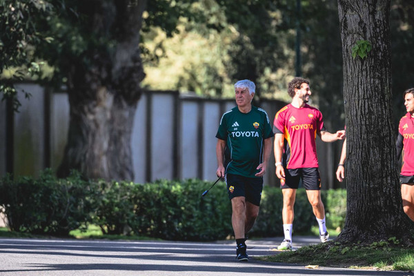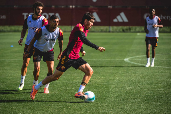 Allenamento mattutino a Trigoria per la Roma di Gian Piero Gasperini. I pochi giallorossi rimasti nella Capitale, si sono ritrovati al centro sportivo Fulvio Bernardini per continuare la preparazione in vista del big match contro l’Inter.